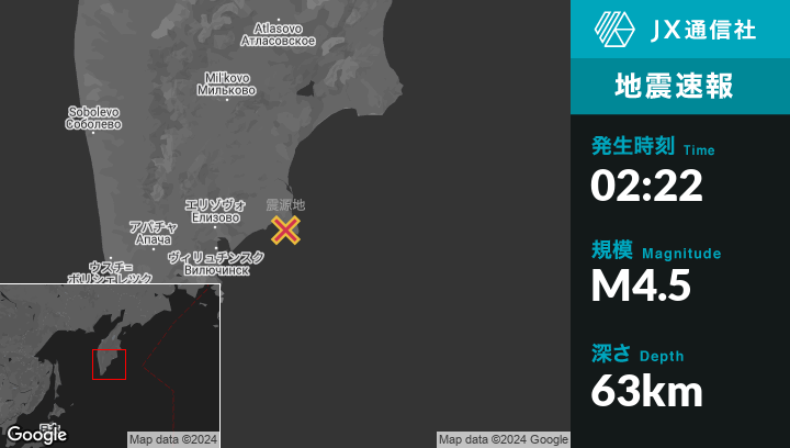 | 震源地 | ロシアのPetropavlovsk-Kamchatskyから東北東79kmの地点 |