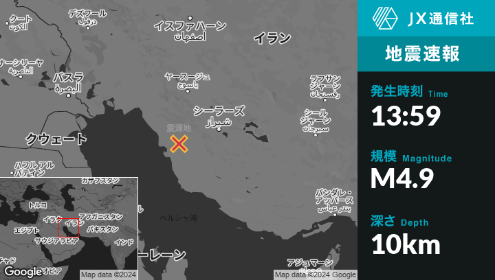 11月21日 13:59頃、イランのBorāzjānから東北東8kmの地点でM4.9の地震がありました。