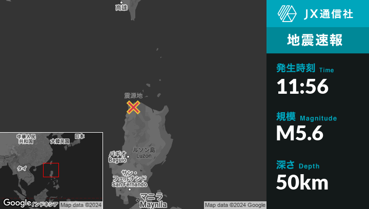12月30日 11:56頃、フィリピンのPagudpudから東南東2kmの地点でM5.6の地震がありました。