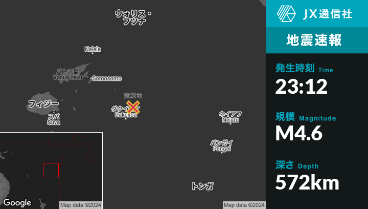 | 震源地 | フィジーのLevukaから東267kmの地点 |
