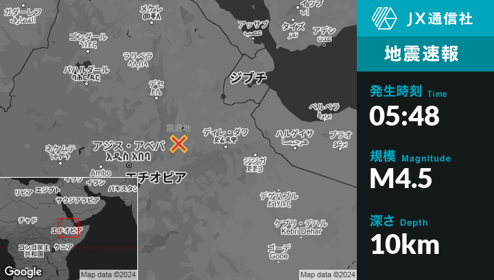 | 震源地 | エチオピアのAbomsaから東南東42kmの地点 |