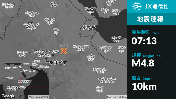 | 震源地 | エチオピアのAbomsaから東南東39kmの地点 |