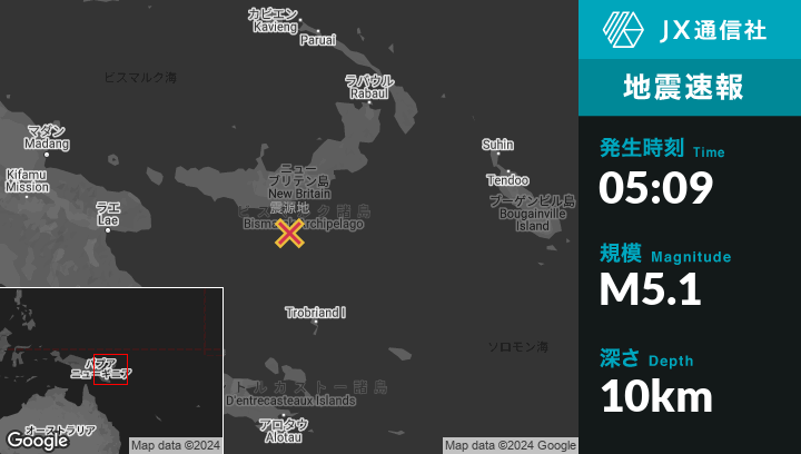 | 震源地 | パプアニューギニアのKandrianから東南東122kmの地点 |