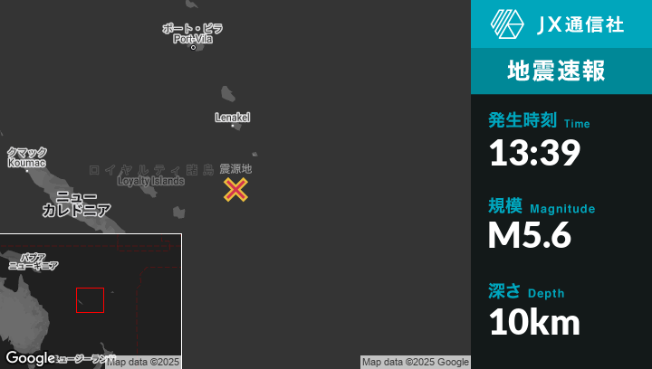 | 震源地 | バヌアツのIsangelから南148kmの地点 |