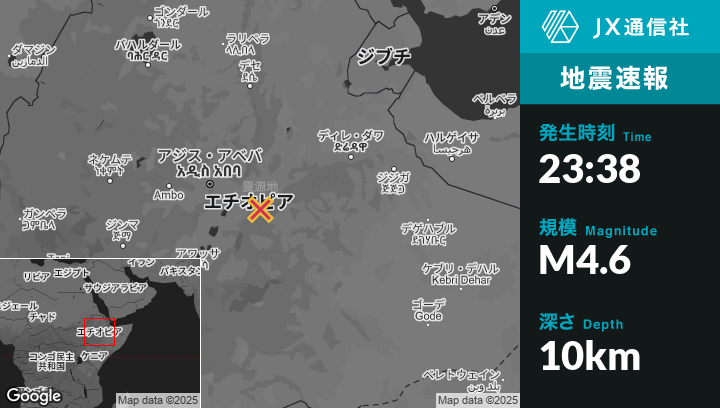 | 震源地 | エチオピアのMetahāraから南36kmの地点 |