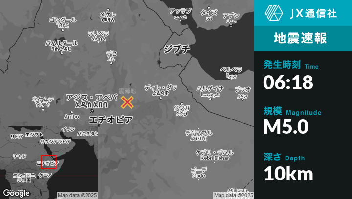 | 震源地 | エチオピアのĀwashから北北東63kmの地点 |