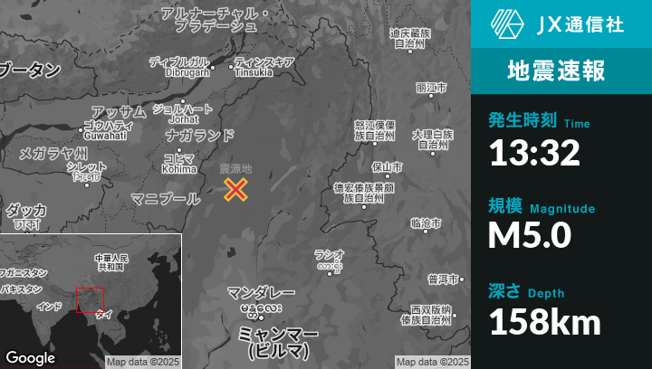 | 震源地 | インドのPhekから南東128kmの地点 |