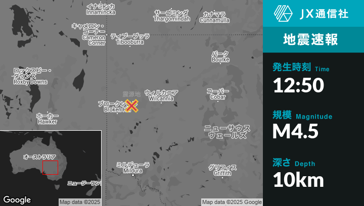 | 震源地 | オーストラリアのBroken Hillから北東73kmの地点 |