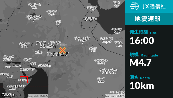 | 震源地 | エチオピアのĀwashから北西17kmの地点 |