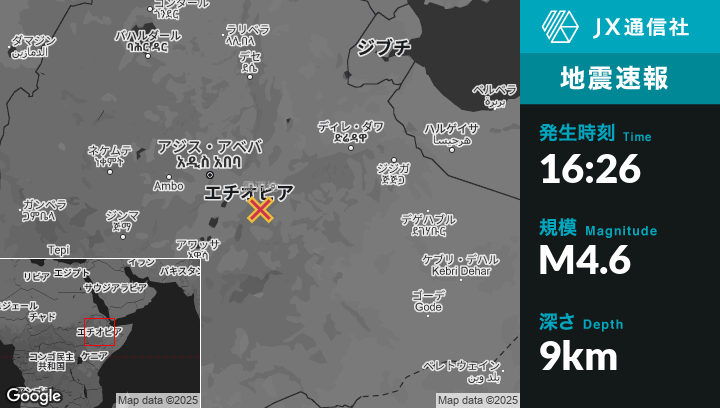 | 震源地 | エチオピアのSīrēから東42kmの地点 |