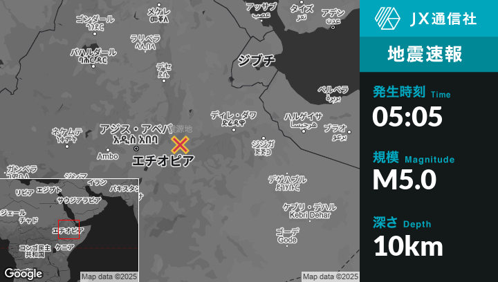 | 震源地 | エチオピアのĀwashから北31kmの地点 |