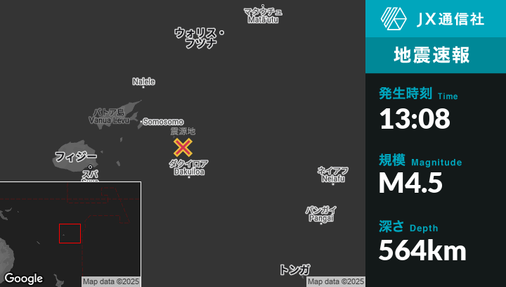 | 震源地 | フィジーのLevukaから東北東222kmの地点 |
