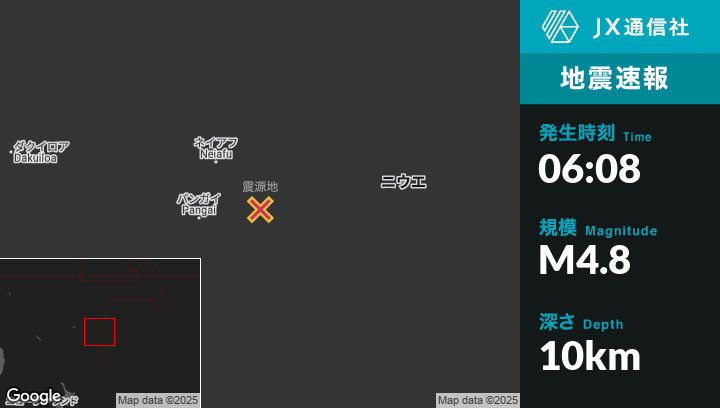 1月06日 06:08頃、トンガのFangale’oungaから東140kmの地点でM4.8の地震がありました。