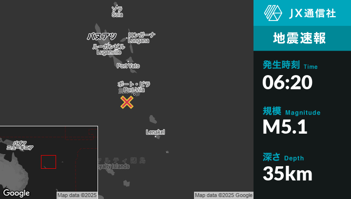 | 震源地 | バヌアツのPort-Vilaから南西42kmの地点 |