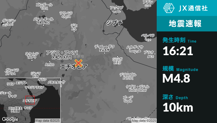 | 震源地 | エチオピアのMetahāraから北北東10kmの地点 |