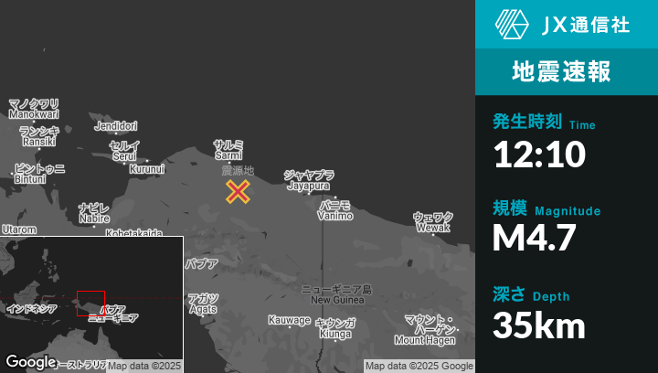 | 震源地 | インドネシアのAbepuraから西186kmの地点 |