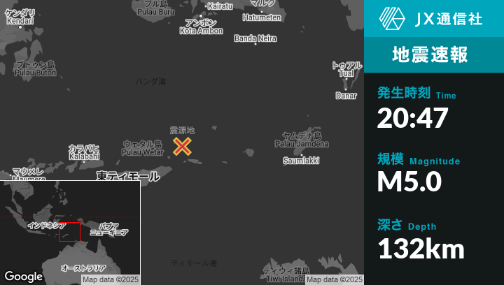 | 震源地 | 東ティモールのLospalosから北北東122kmの地点 |