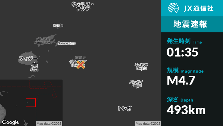 | 震源地 | フィジーのLevukaから東251kmの地点 |