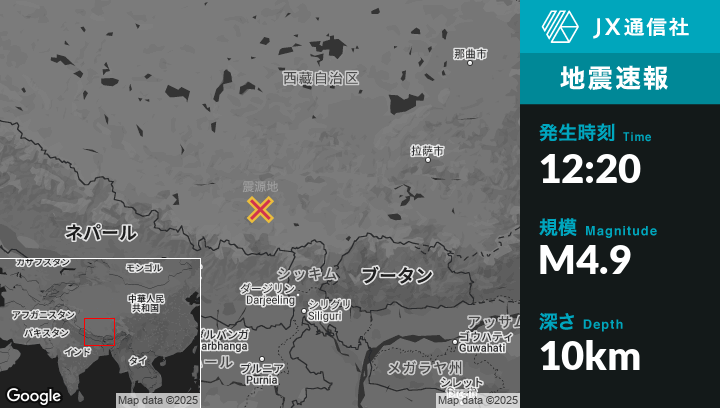 | 震源地 | ネパールのLobucheから北北東112kmの地点 |
