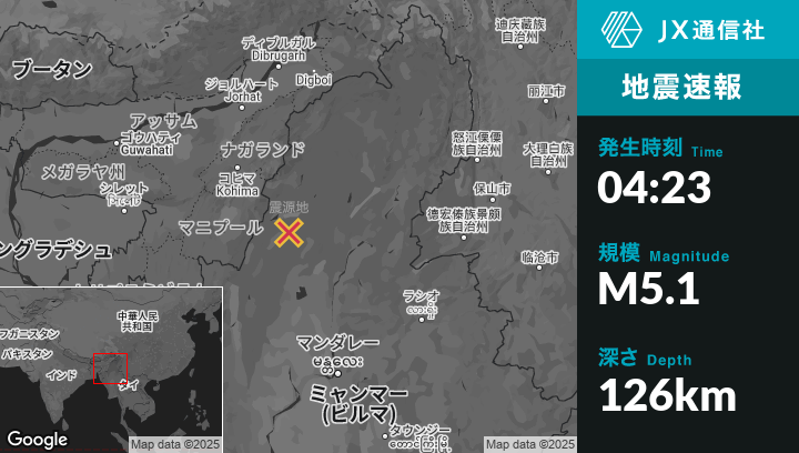 | 震源地 | インドのWāngjingから東106kmの地点 |