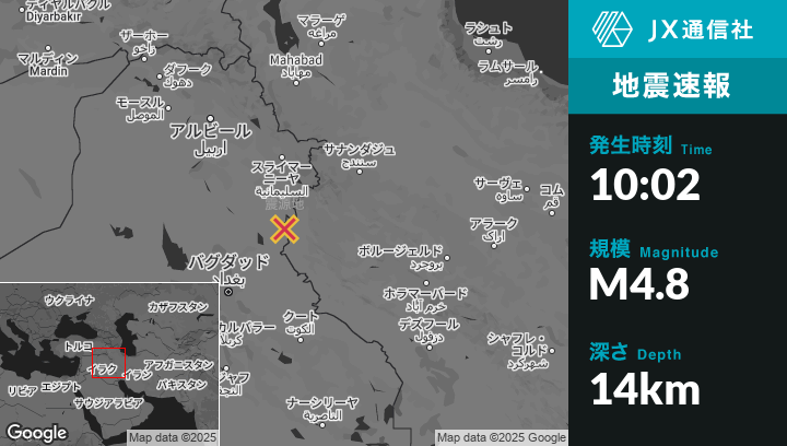 1月27日 10:02頃、イランのSarpol-e Z̄ahābから西34kmの地点でM4.8の地震がありました。