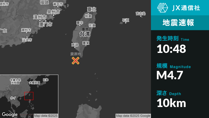 | 震源地 | 台湾のHengchunから西南西46kmの地点 |