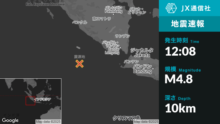 | 震源地 | インドネシアのPagar Alamから南南西283kmの地点 |