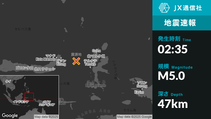 | 震源地 | インドネシアのTernateから西北西132kmの地点 |