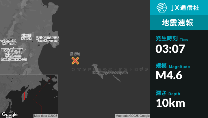 | 震源地 | ロシアのUst’-Kamchatsk Staryyから東南東149kmの地点 |