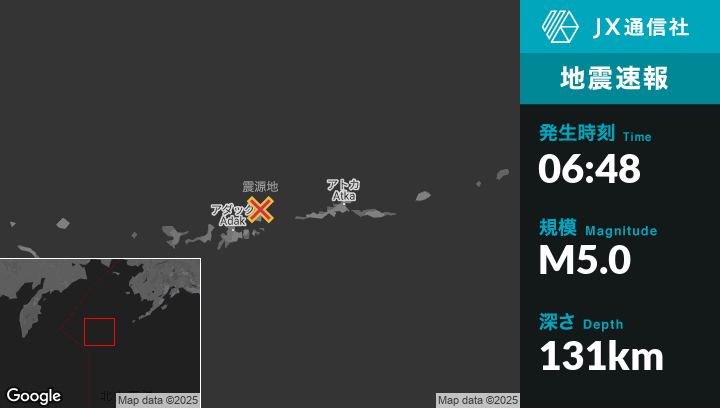 | 震源地 | アラスカのAdakから北東55kmの地点 |