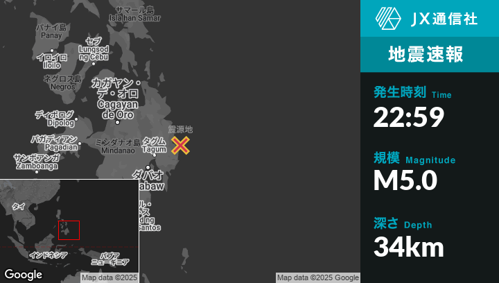 | 震源地 | フィリピンのTaytayanから北東22kmの地点 |