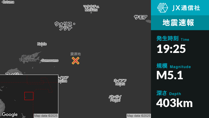 | 震源地 | ウォリス・フツナのAloから南南東274kmの地点 |