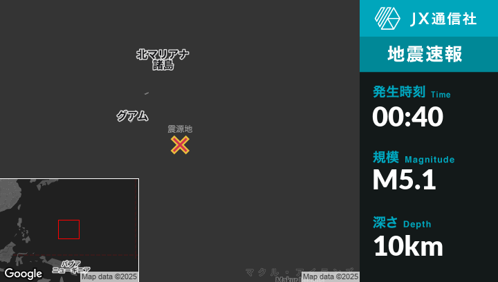 | 震源地 | グアムのYigo Villageから東南東178kmの地点 |