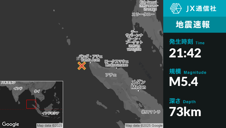 | 震源地 | インドネシアのBanda Acehから西69kmの地点 |