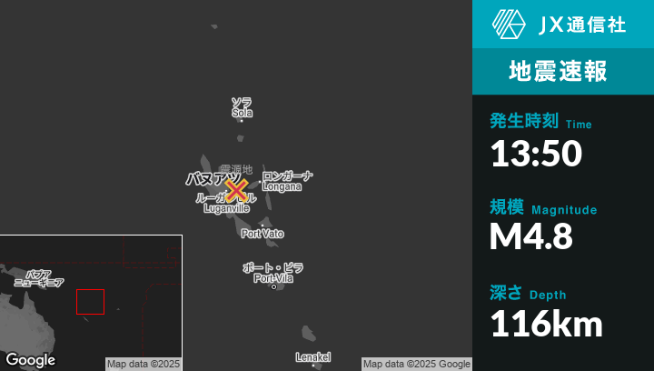 | 震源地 | バヌアツのLuganvilleから東北東31kmの地点 |