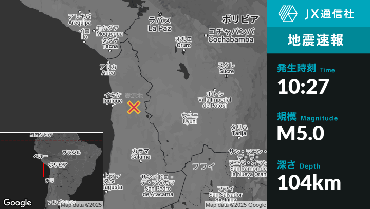 | 震源地 | チリのLa Tiranaから東北東47kmの地点 |