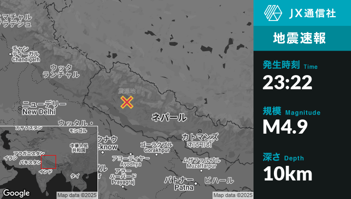 4月04日 23:22頃、ネパールのDailekhから東北東32kmの地点でM4.9の地震がありました。