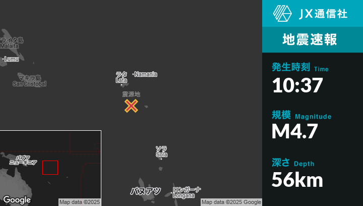 | 震源地 | ソロモン諸島のLataから南南東96kmの地点 |