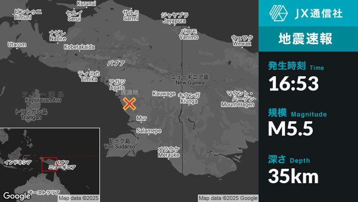 | 震源地 | インドネシアのAgatsから南東73kmの地点 |