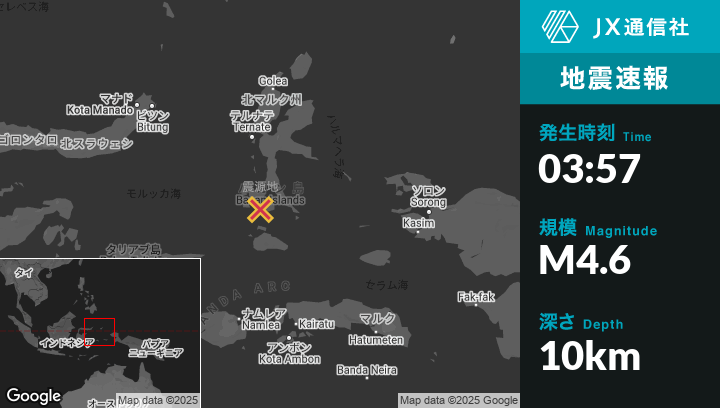 | 震源地 | インドネシアのLabuhaから南東11kmの地点 |