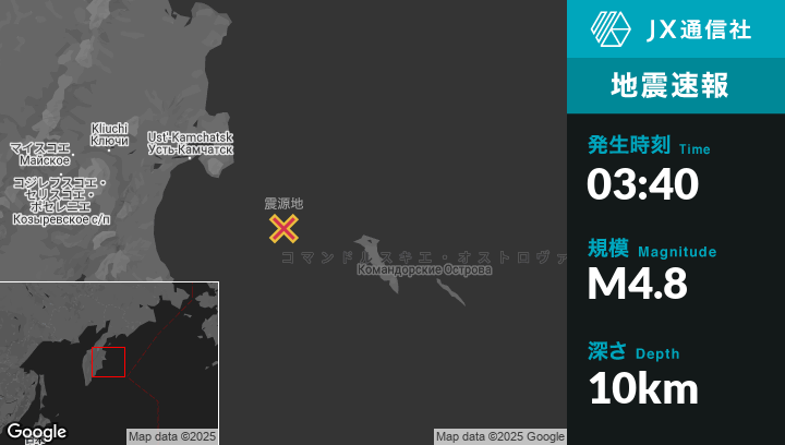 | 震源地 | ロシアのUst’-Kamchatsk Staryyから南東142kmの地点 |