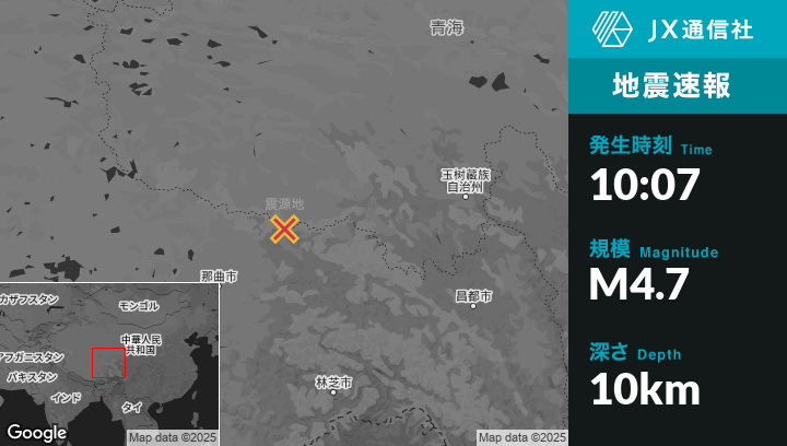 | 震源地 | 中国のNagquから北東171kmの地点 |