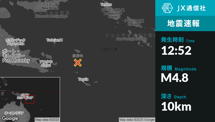 6月02日 12:52頃、パプアニューギニアのSamaraiから東北東248kmの地点でM4.8の地震がありました。