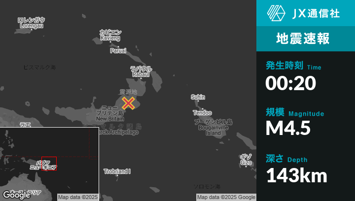 | 震源地 | パプアニューギニアのKokopoから南西117kmの地点 |