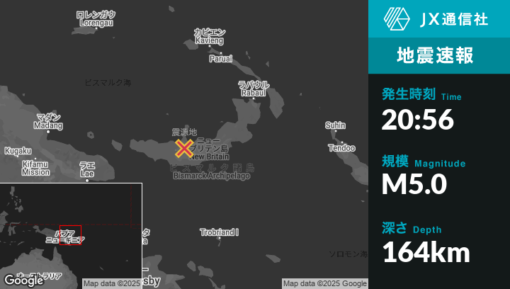 | 震源地 | パプアニューギニアのKimbeから西南西15kmの地点 |