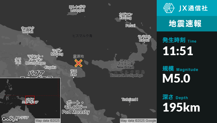 | 震源地 | パプアニューギニアのFinschhafenから北北西123kmの地点 |
