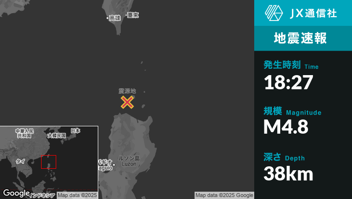 | 震源地 | フィリピンのNamuacから北65kmの地点 |