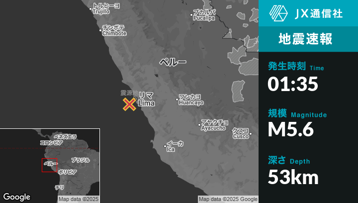 | 震源地 | ペルーのCallaoから西南西23kmの地点 |