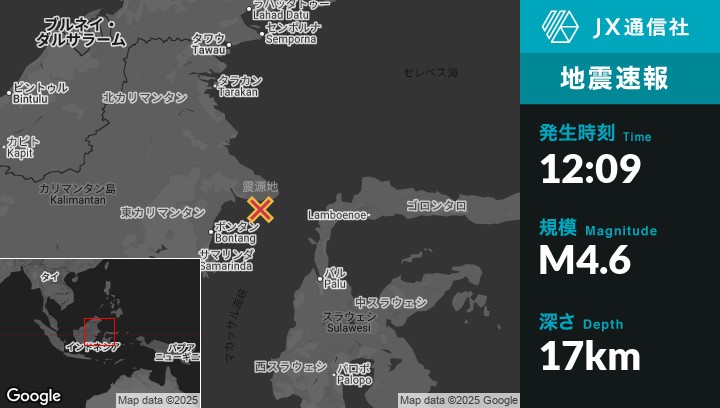 | 震源地 | インドネシアのBontangから東北東137kmの地点 |