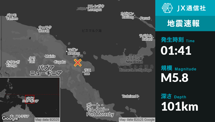 | 震源地 | パプアニューギニアのKainantuから東北東91kmの地点 |